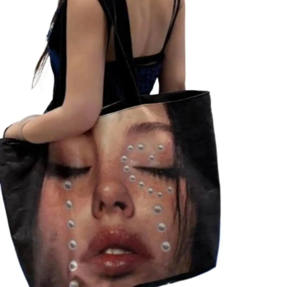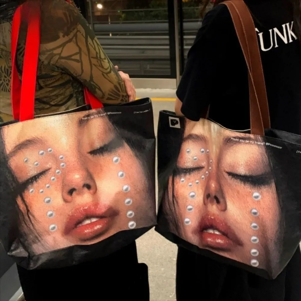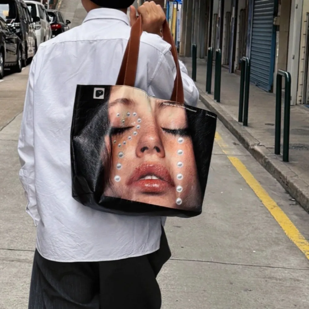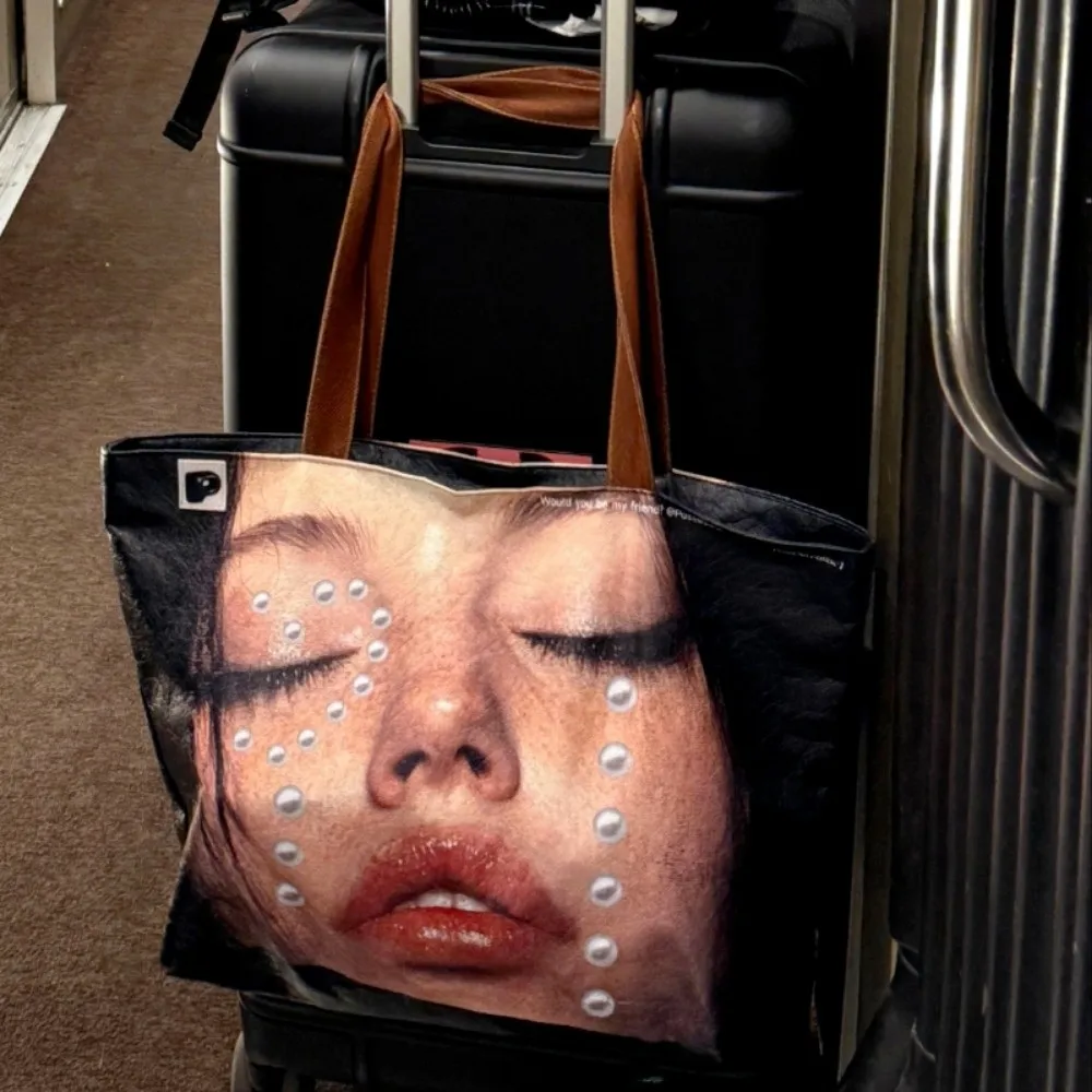 Creative Waterproof Portrait Print Tote Bag Light-weight Face Printing Shoulder Bag Large Capacity Crossbody Handbag Gifts