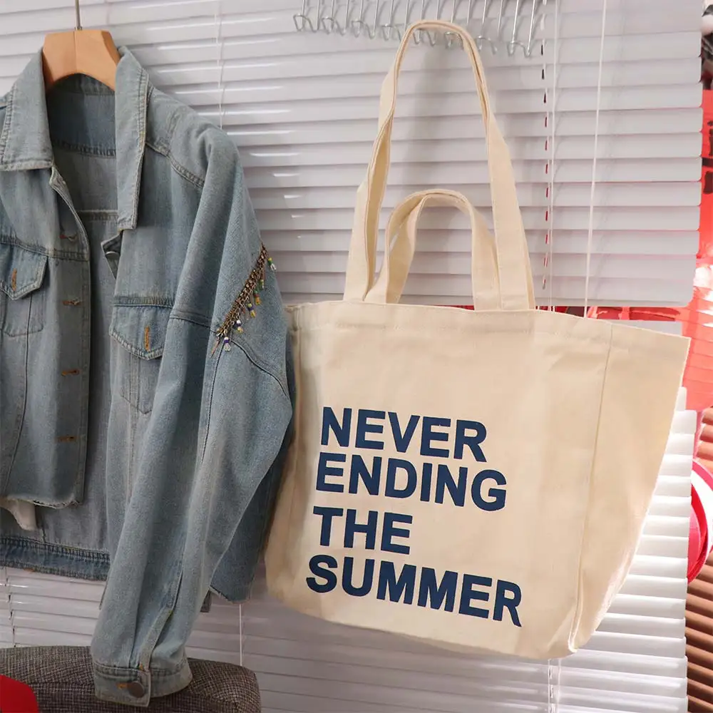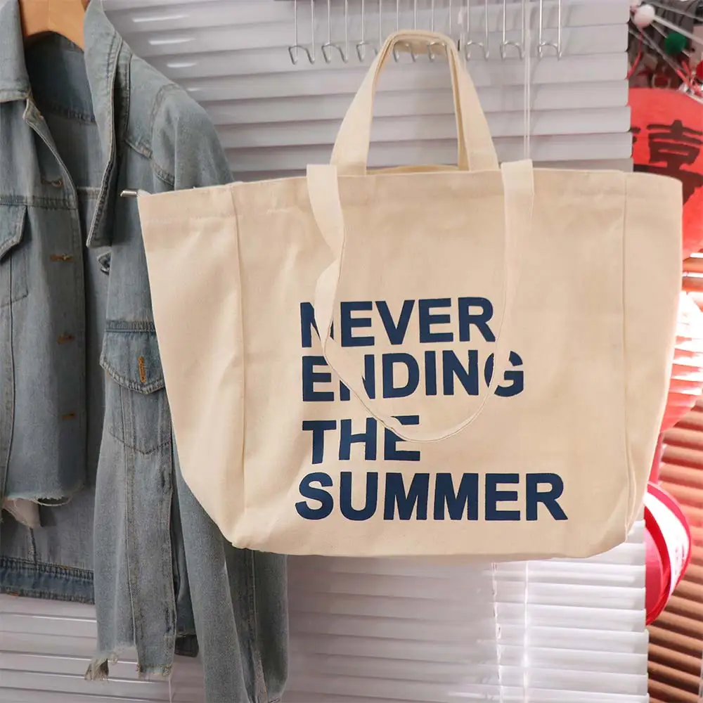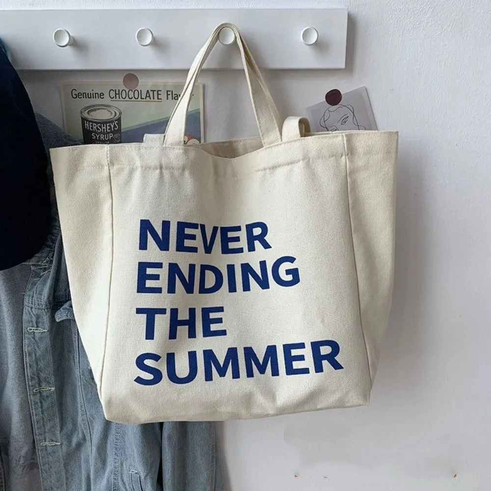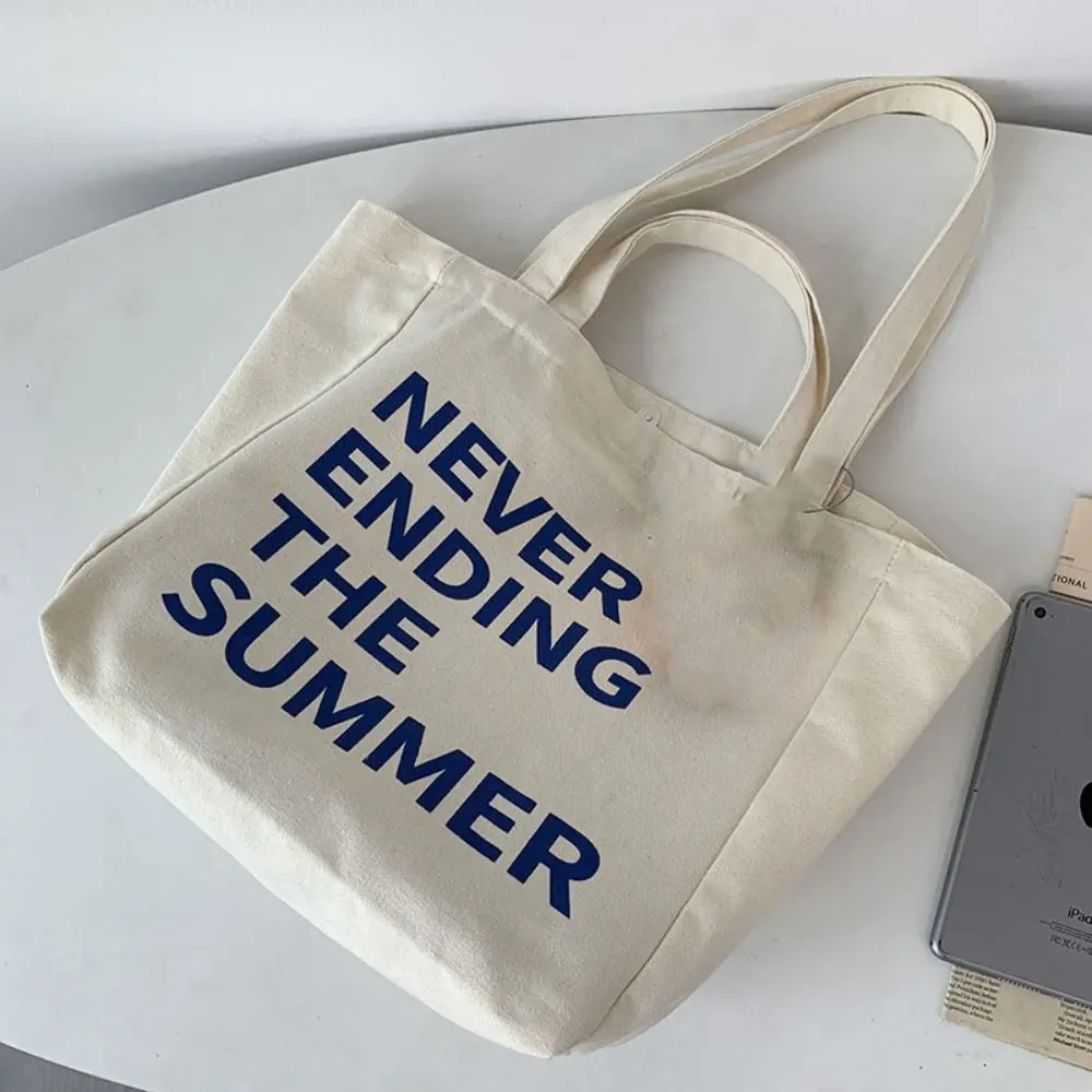 Large Capacity Letter Print Tote Bag Lightweigh Soft Literary Canvas Shoulder Bag Casual Commuting Woman Shoulder Bag Work