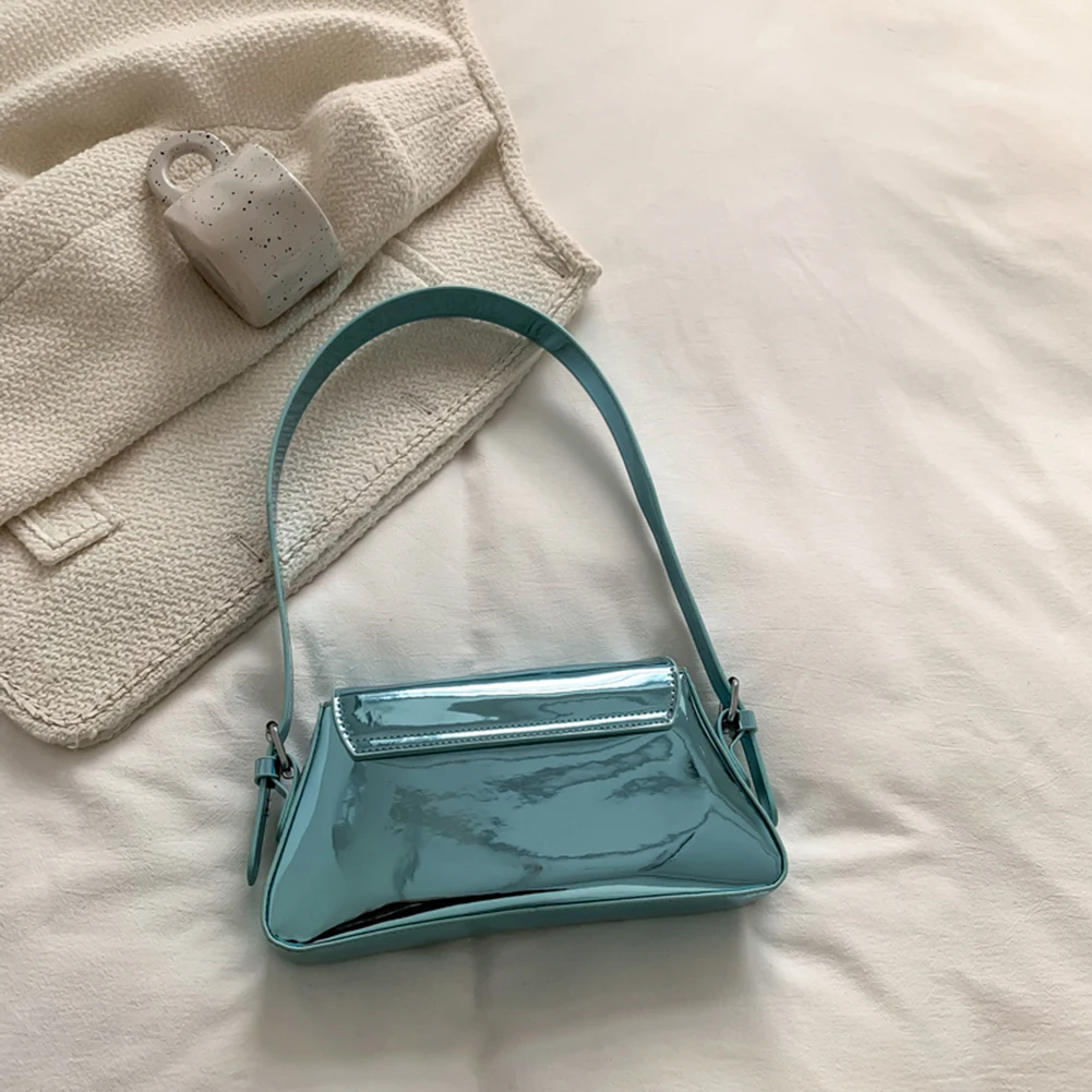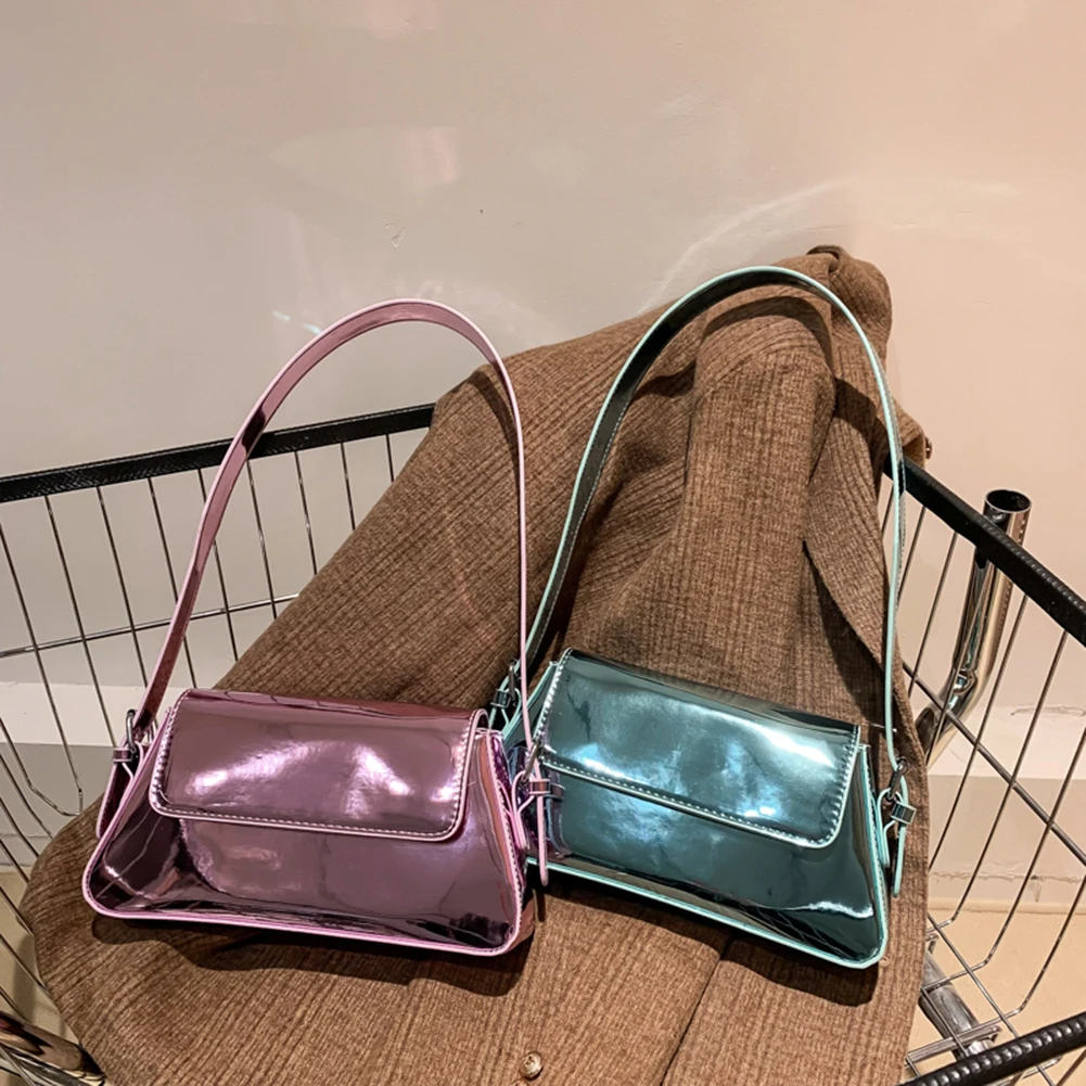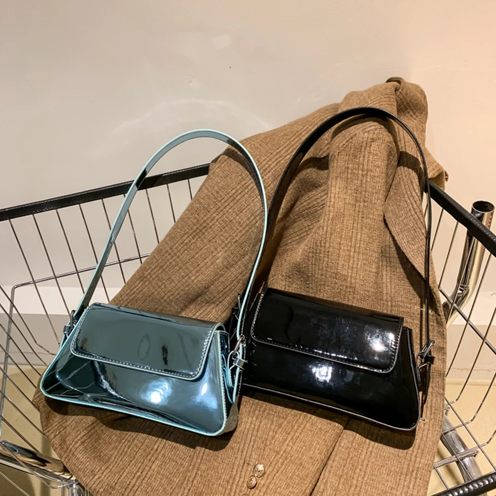 PU Leather Evening Hand Bag Bright Fashion Women Underarm Bag Casual Portable Exquisite Solid Color Female Satchel