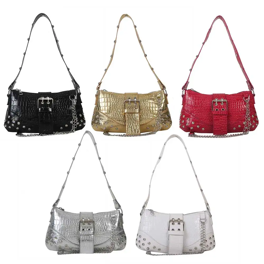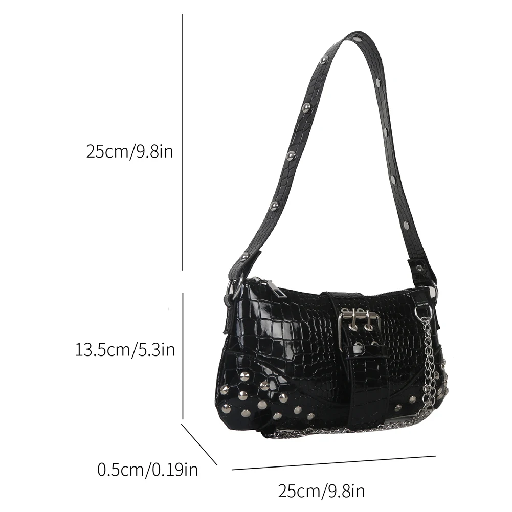 Women Fashion Shopping Bag Gothic Underarm Bag Cool Style Trendy Rock Girls Handbag Y2K Rivet for Travel Vacation Daily