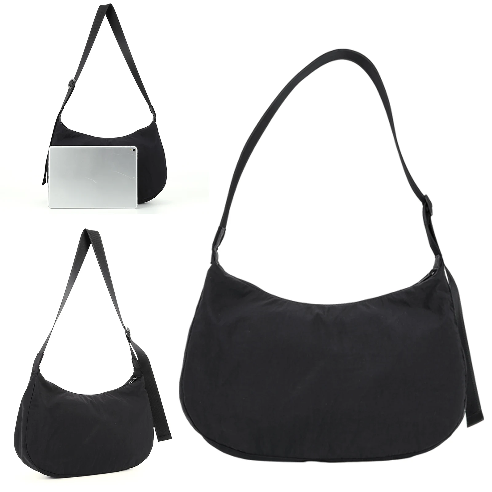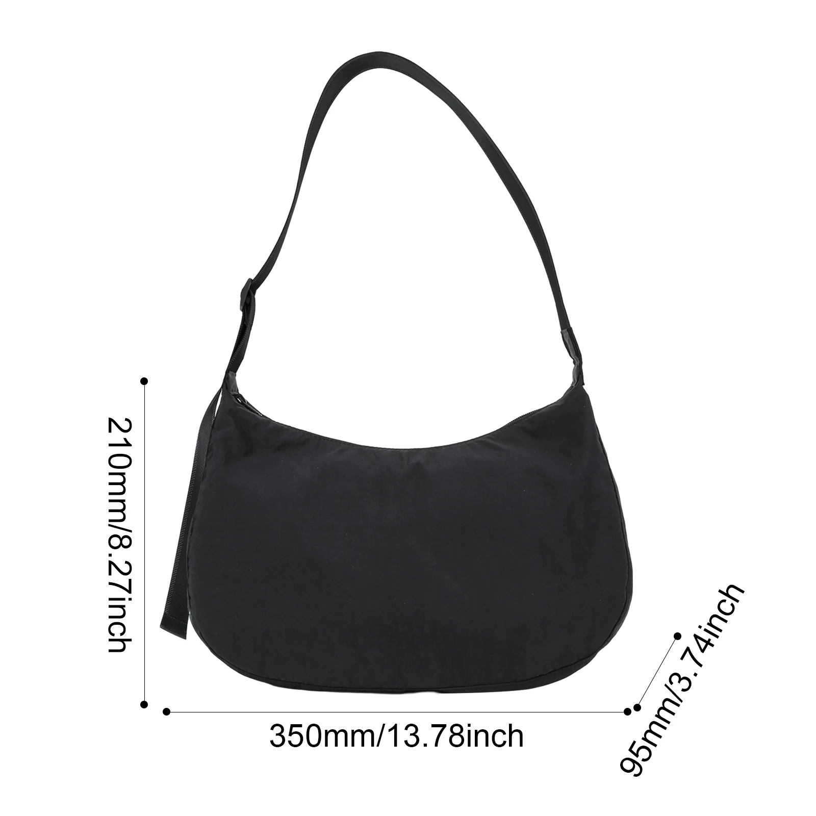 Women Nylon Shoulder Bag Zipper Crescent Bag Casual Fashion Tote Bag Satchel Hobo Bag Girl Stylish Purse