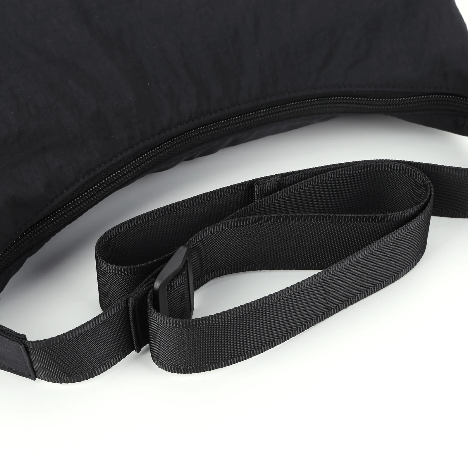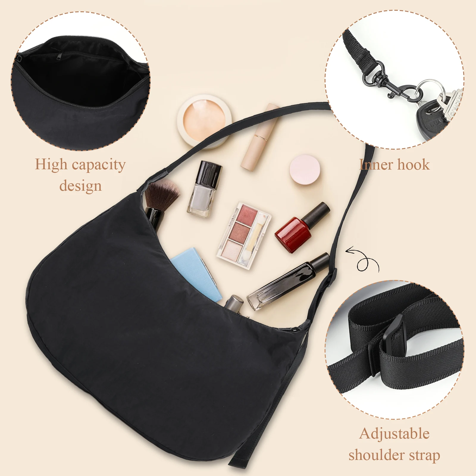 1. Unique Crescent Design: Stand out with this fashionable and casual nylon crescent crossbody bag, featuring a distinctive crescent-shaped design. Its spacious interior provides ample room to store all your essentials. Wear it diagonally across your shoulder or body for a hands-free experience.