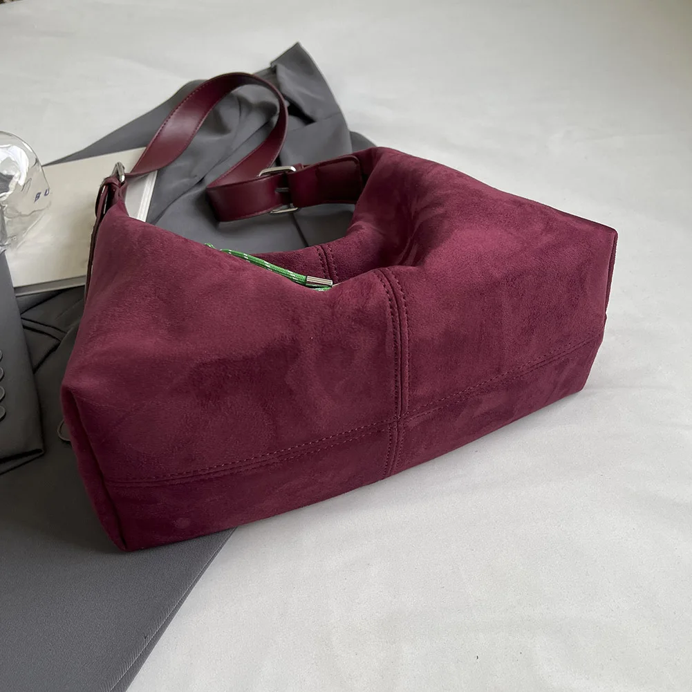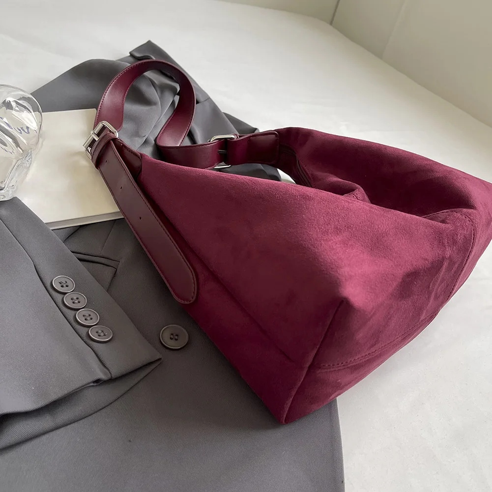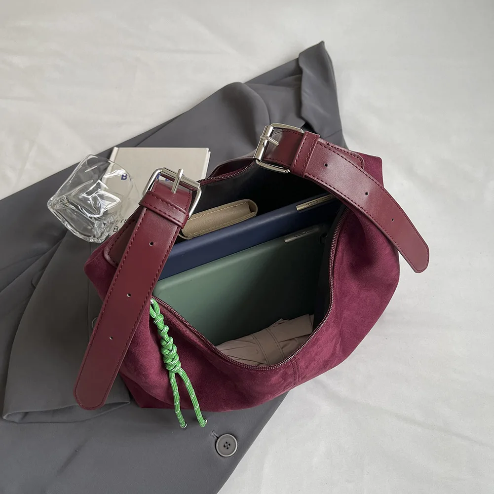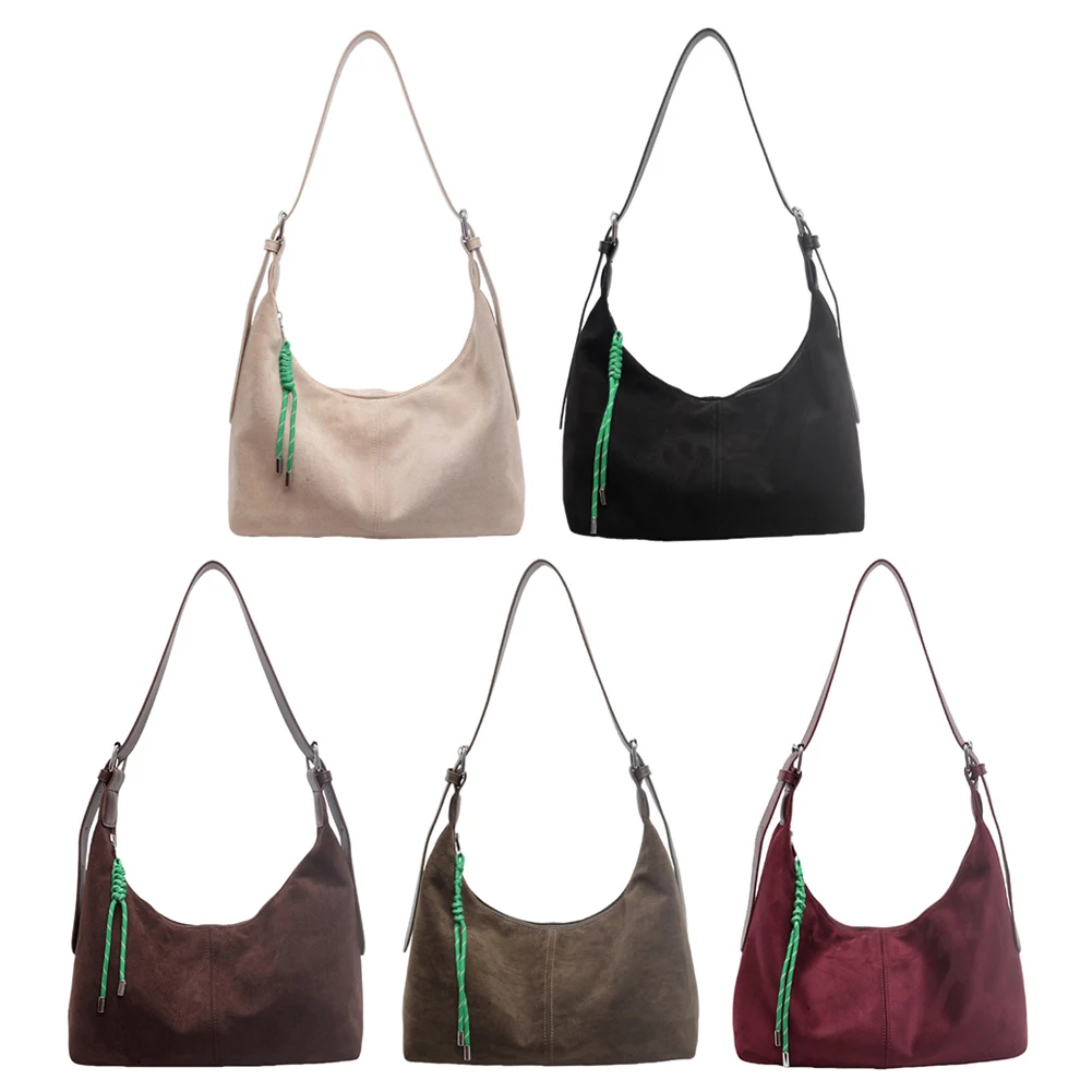 Women Suede Shoulder Bag Adjustable Strap Crossbody Bag with Zipper Crescent Bag Solid Hobo Bag for Work Travel Feature: