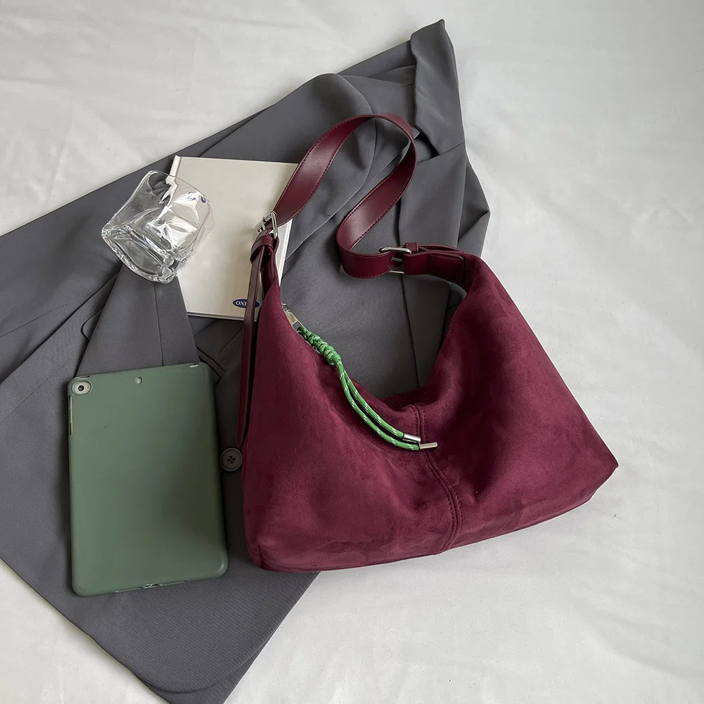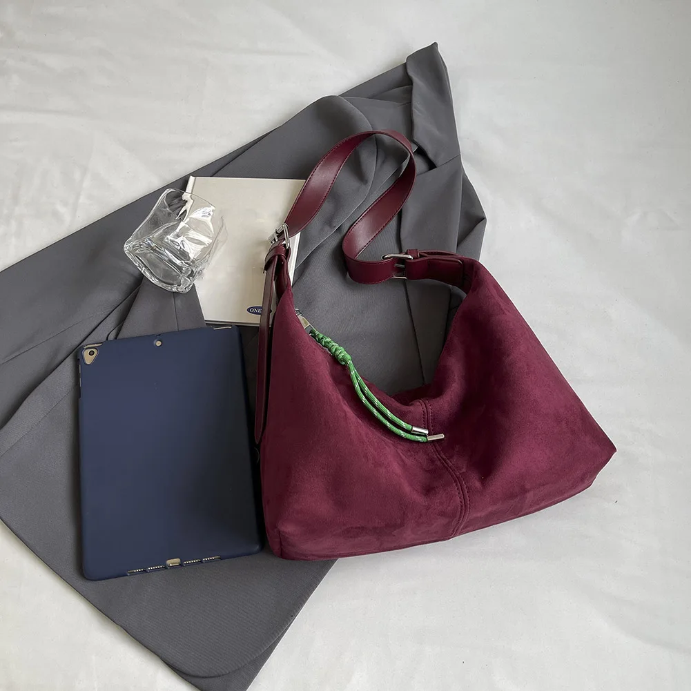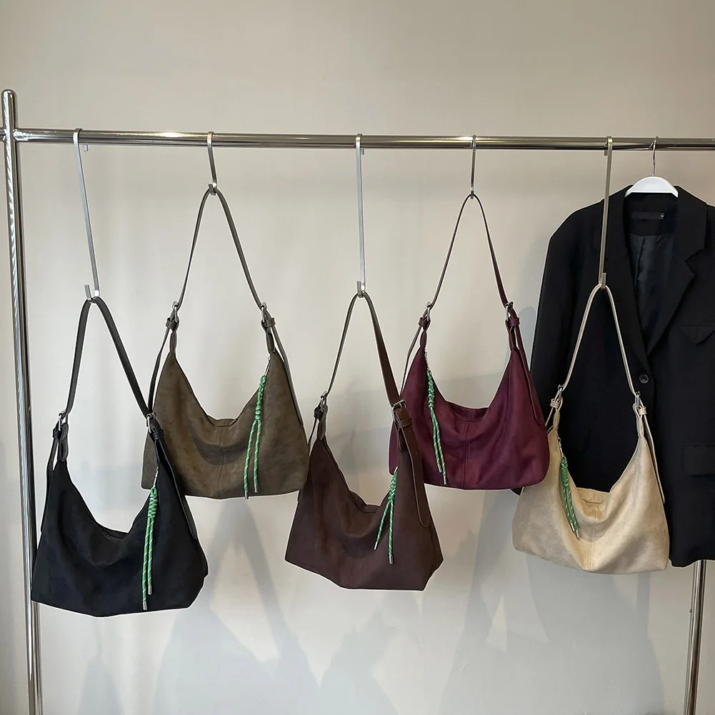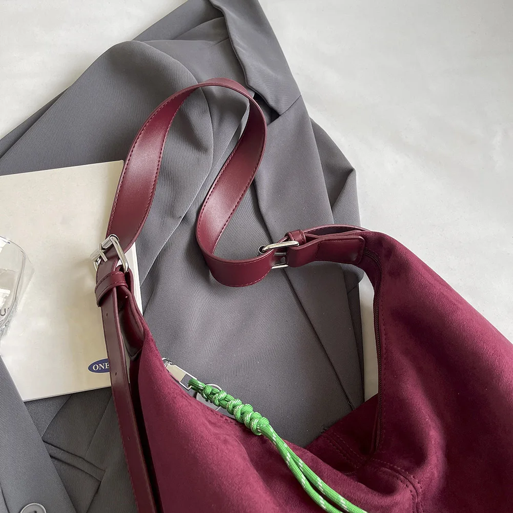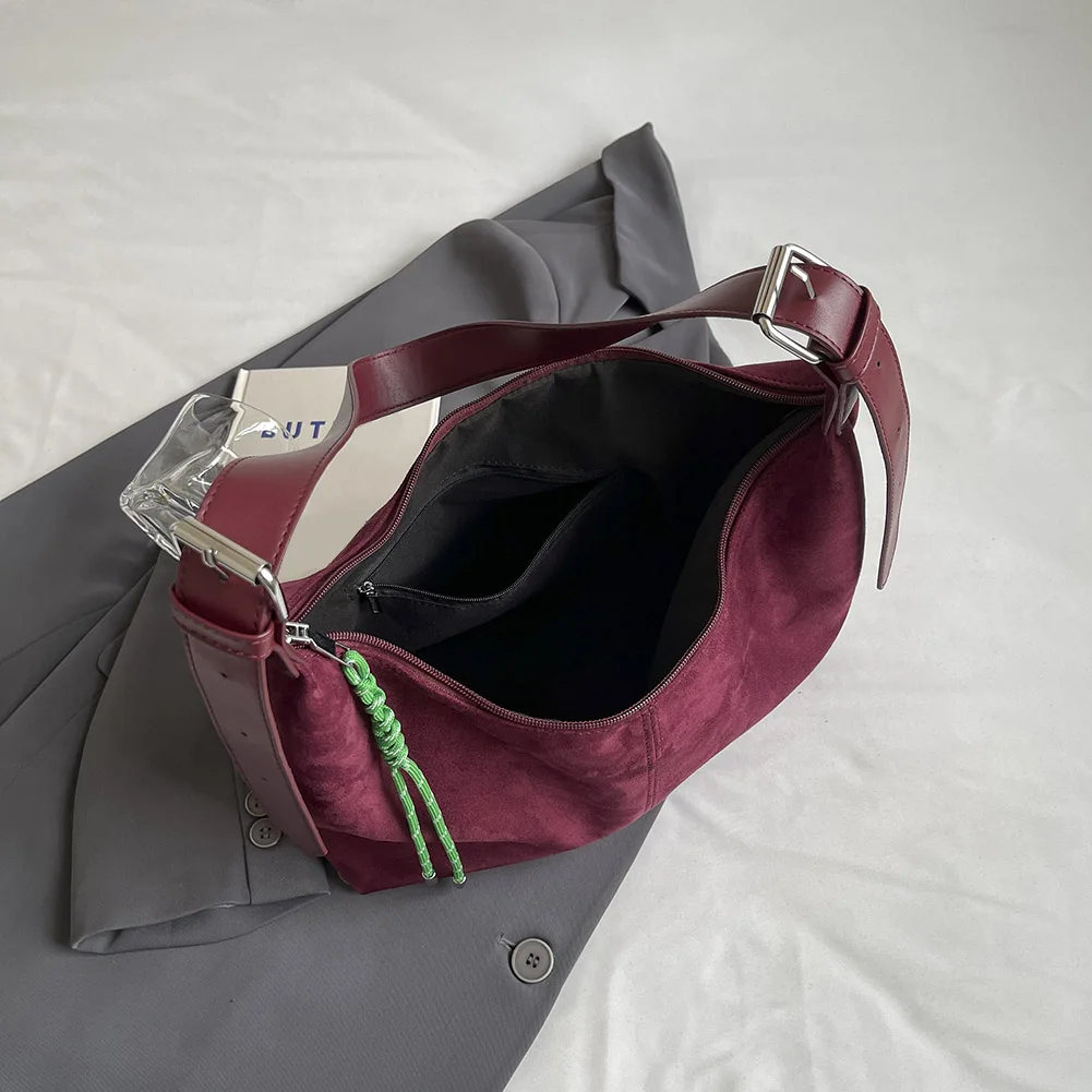 Women Suede Shoulder Bag Adjustable Strap Crossbody Bag with Zipper Crescent Bag Solid Hobo Bag for Work Travel Feature: