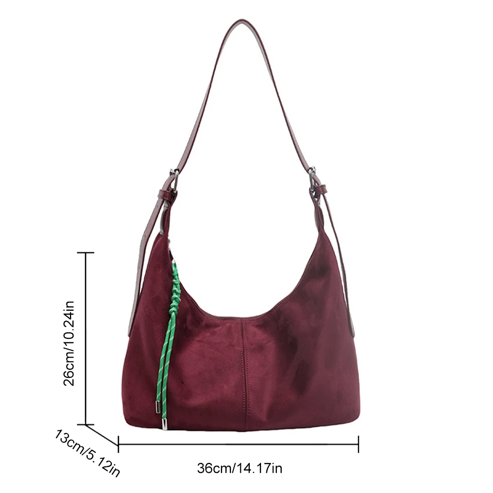 1. Premium Material: This shoulder bag is crafted from suede, offering a luxurious and comfortable texture. It is built to last and can withstand the test of time, while also being incredibly easy to clean and maintain. 2. Size: This trendy crossbody bag is 360.00×260.00×130.00mm/14.17×10.24×5.12inch, providing ample space for your wallet, phone, cosmetic products, glasses, and other small items. 3. Fashionable Design: This handbag showcases a stylish and minimalist design that exudes versatility. Whether paired with casual attire or for formal occasions, it seamlessly complements your overall look, allowing you to maintain a fashionable and elegant style at all times. 4. Versatile Usage: This crescent bag is suitable for a variety of occasions, including work, parties, shopping, travel, beach outings, and more. It effortlessly complements any outfit and footwear, allowing you to showcase your nobility and elegance with ease. 5. Ideal Gift: This exquisitely designed fashionable hobo bag is the gift to give to your loved ones on special occasions or holidays. It not only showcases your taste and fashion sense but also adds confidence and charm to the recipient.